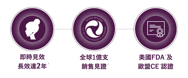 3. VOLUX™, VOLUMA®, VOLIFT® 及 VOLBELLA® (approval as VOLUX™ XC, VOLUMA® XC, VOLLURE® XC and VOLBELLA® XC in US) 均獲得美國 FDA 認證. U.S. Food and Drug Administration, Department of Health & Human Services. Juvéderm VOLUX XC approval letter P110033/S065, July 2022; Juvéderm VOLUMA XC approval letter P110033/S047, Jun 2020; Juvéderm VOLLURE XC approval letter P110033/S020, Mar 2017; Juvéderm VOLBELLA XC approval letter P110033/S053, May 2021;