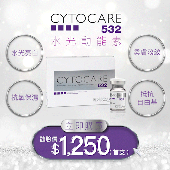 水光針是專門為肌膚補充水分,而CYTOCARE 532是為肌膚提供充足營養。假設肌膚有足夠水分,但缺乏各種營養成分,初看水嫩,短期內肌膚質素會打回原形。