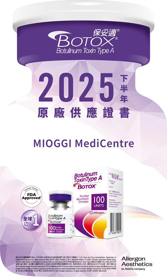 BOTOX肉毒桿菌療程可與透明質酸一起使用嗎? 可以。同時使用可以達致更理想的效果。舉例來說,若眉心紋形成已久並出現靜態紋,建議先接受BOTOX肉毒桿菌療程使肌肉放鬆#,再接受透明質酸療程來修飾靜態紋,恢復平滑肌膚。
