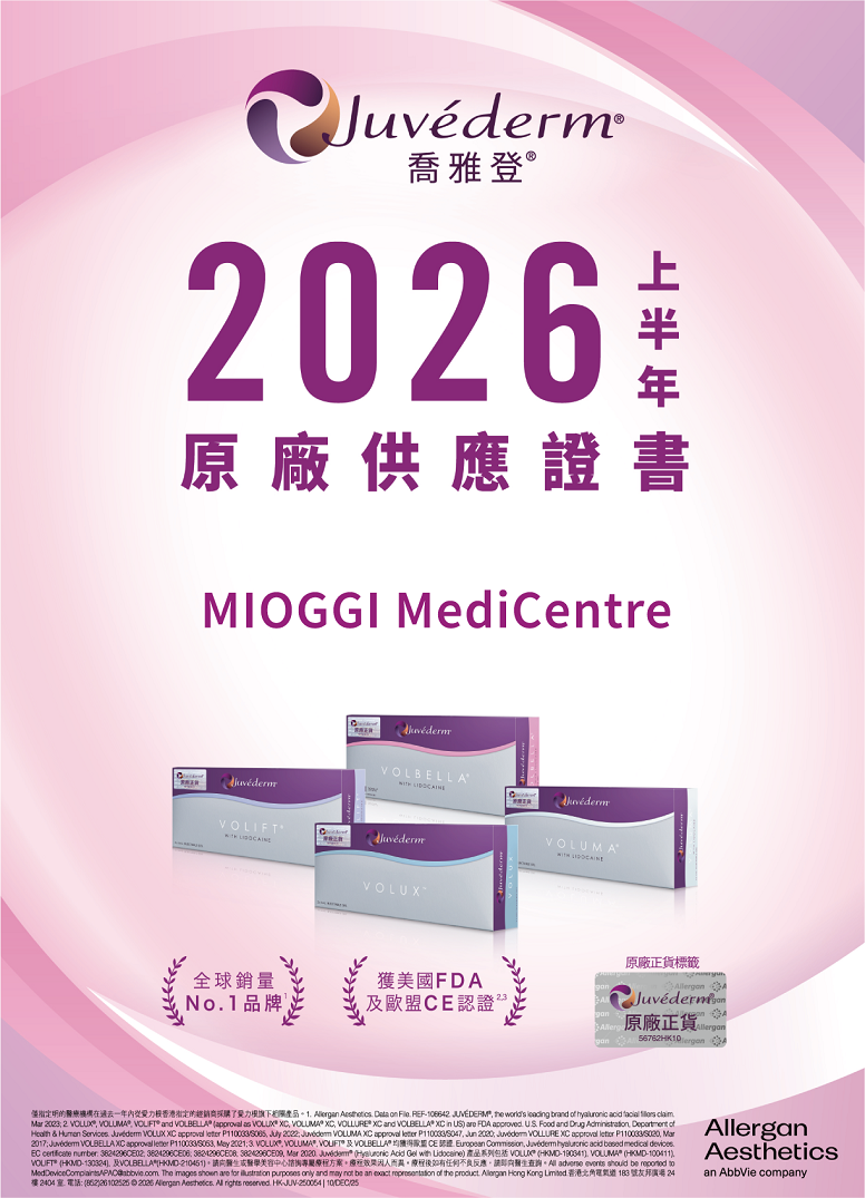 眼周是面部最早衰老的地方,年齡增長令膠原蛋白及皮下脂肪流失,眼部皮膚失去支撐使淚溝變深,造成眼袋和黑眼圈的錯覺,令人衰老憔悴,外表比實際年齡更大!MIOGGI「VOLBELLA™豐盈淚溝療程」採用定點定量透明質酸微注術,打淚溝即時填充眼下凹陷,有效減淡淚溝、眼袋、眼紋及淚溝型黑眼圈,修復歲月痕跡,男女適用。
